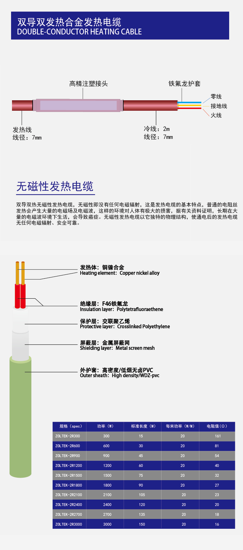 碳纖維發(fā)熱電纜技術(shù)參數(shù)